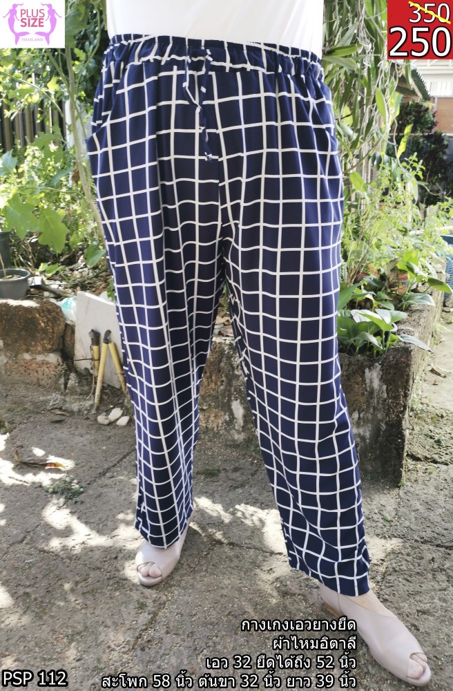 กางเกงคนอ้วน ราคาถูก 2 ตัว 399 !! เก็บเงินปลายทาง กางเกงคนอ้วนผู้หญิงไซส์ใหญ่ ลายตารางน้ำเงิน เอวยางยืด ผ้าไหมอิตาลี ยืดได้ถึง 52 นิ้ว