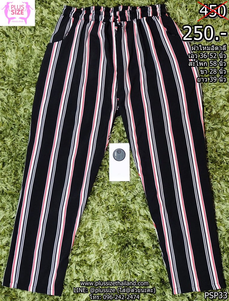 350บาท! กางเกงคนอ้วนผู้หญิงไซส์ใหญ่ ลายทางดำขาวแดง เอวยางยืด ผ้าไหมอิตาลี ยืดได้ถึง 52 นิ้ว ใส่ทำงาน ใส่ไปเที่ยว