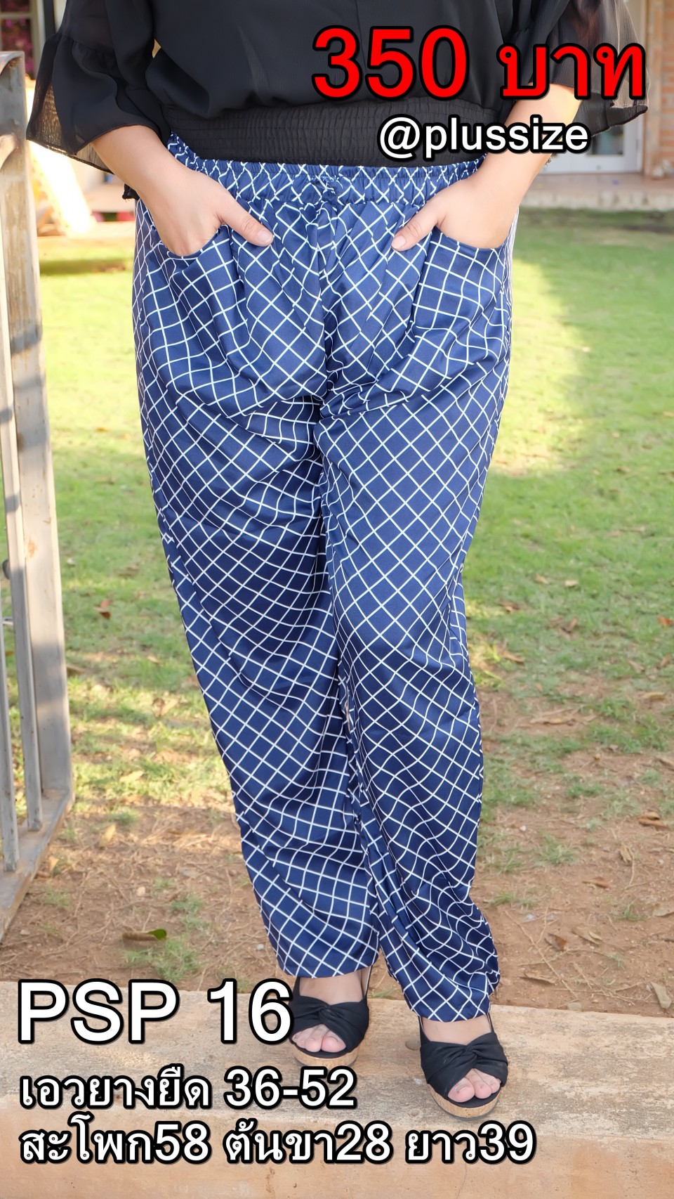 350บาท! กางเกงคนอ้วนผู้หญิงไซส์ใหญ่ ลายตาราง สีกรม เอวยางยืด ผ้าไหมอิตาลี ยืดได้ถึง 52 นิ้ว ใส่ทำงาน ใส่ไปเที่ยว