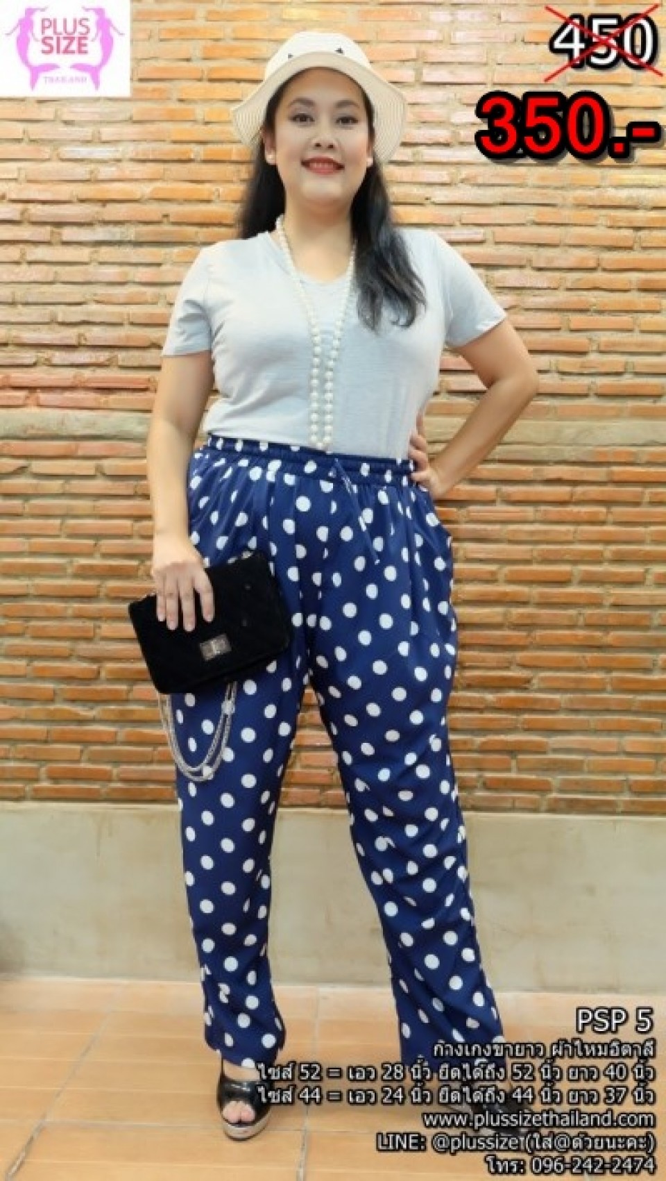 350 บาท! กางเกงคนอ้วนผู้หญิง สีกรม ลายจุดขาว เอวยางยืด ผ้าไหมอิตาลี ยืดได้ถึง 52 นิ้ว ใส่ทำงาน ใส่ไปเที่ยว