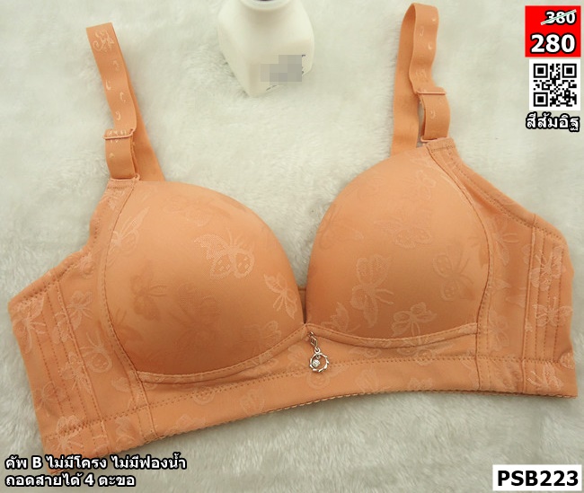280 บาท! เสื้อในคนอ้วน สีส้มอิฐ ไม่มีโครง ฟองน้ำบาง ถอดสายได้ CUP B 4 ตะขอ