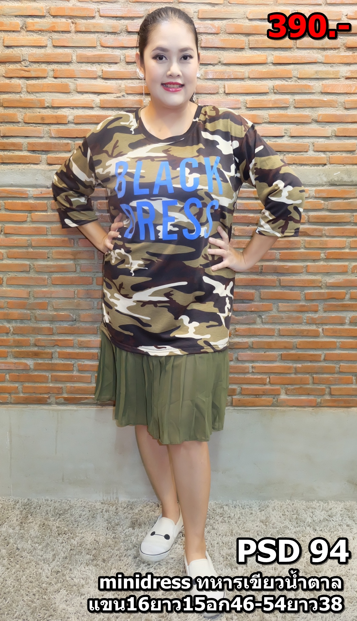 390 บาท! เดรสผ้ายืด ลายทหารเขียวน้ำตาล อก42-50 คนอ้วนผู้หญิง ไซส์ใหญ่ สาวอวบใส่ได้ ราคาถูก