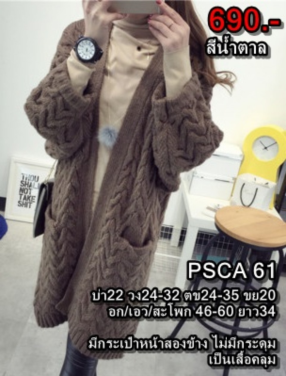690 บาท! เสื้อคลุมกันหนาวคนอ้วนผู้หญิง ผ้าไหมพรม ทอลาย สีน้ำตาล ไม่มีกระดุม มีกระเป๋า 2 ข้าง